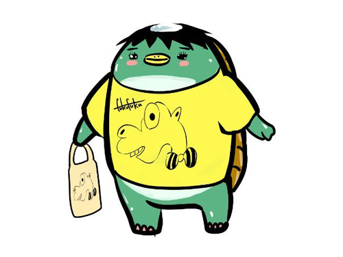毎日、辻川山公園の池とJR福崎駅を行き来して観光客を驚かせている日本一の勤労河童です。得意技は、人間の身体の奥にある架空の臓器「尻子玉」をお尻から抜いてしまいます。たまに池から飛びだし、いろいろなところに出没します。